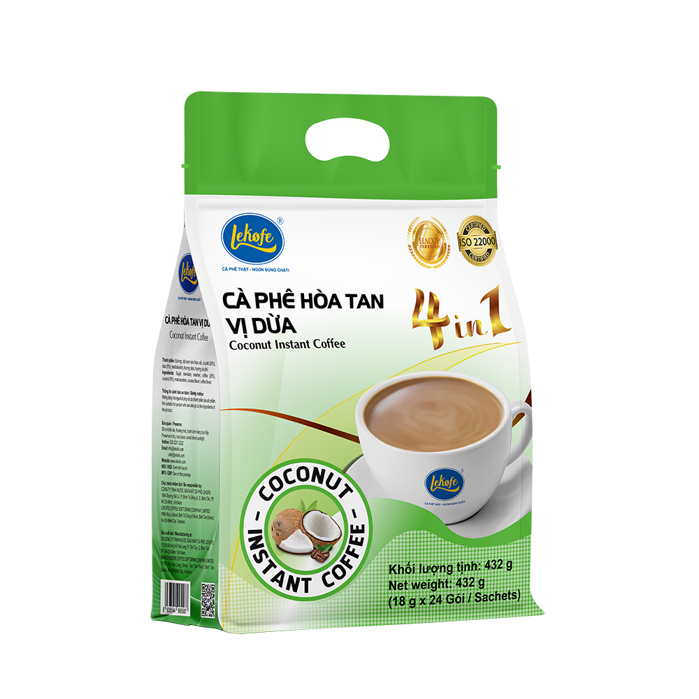 CÀ PHÊ HÒA TAN 4IN1 LEKOFE - ĐẬM VỊ CÀ PHÊ BÉO VỊ DỪA TÚI 24 GÓI 432G